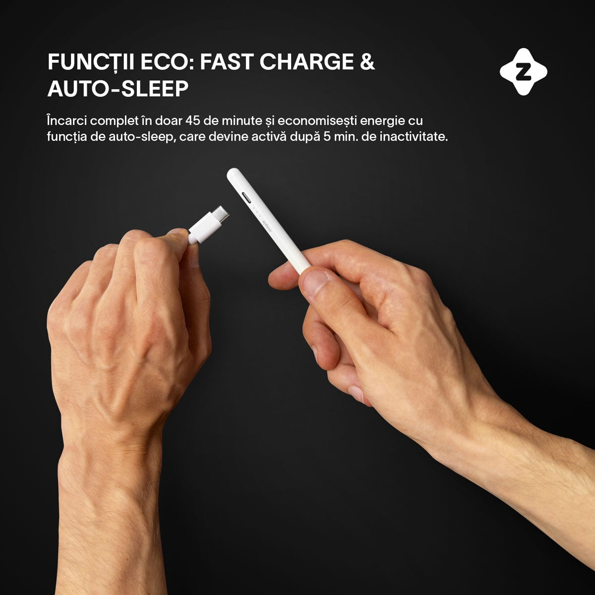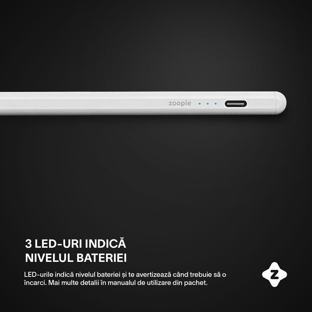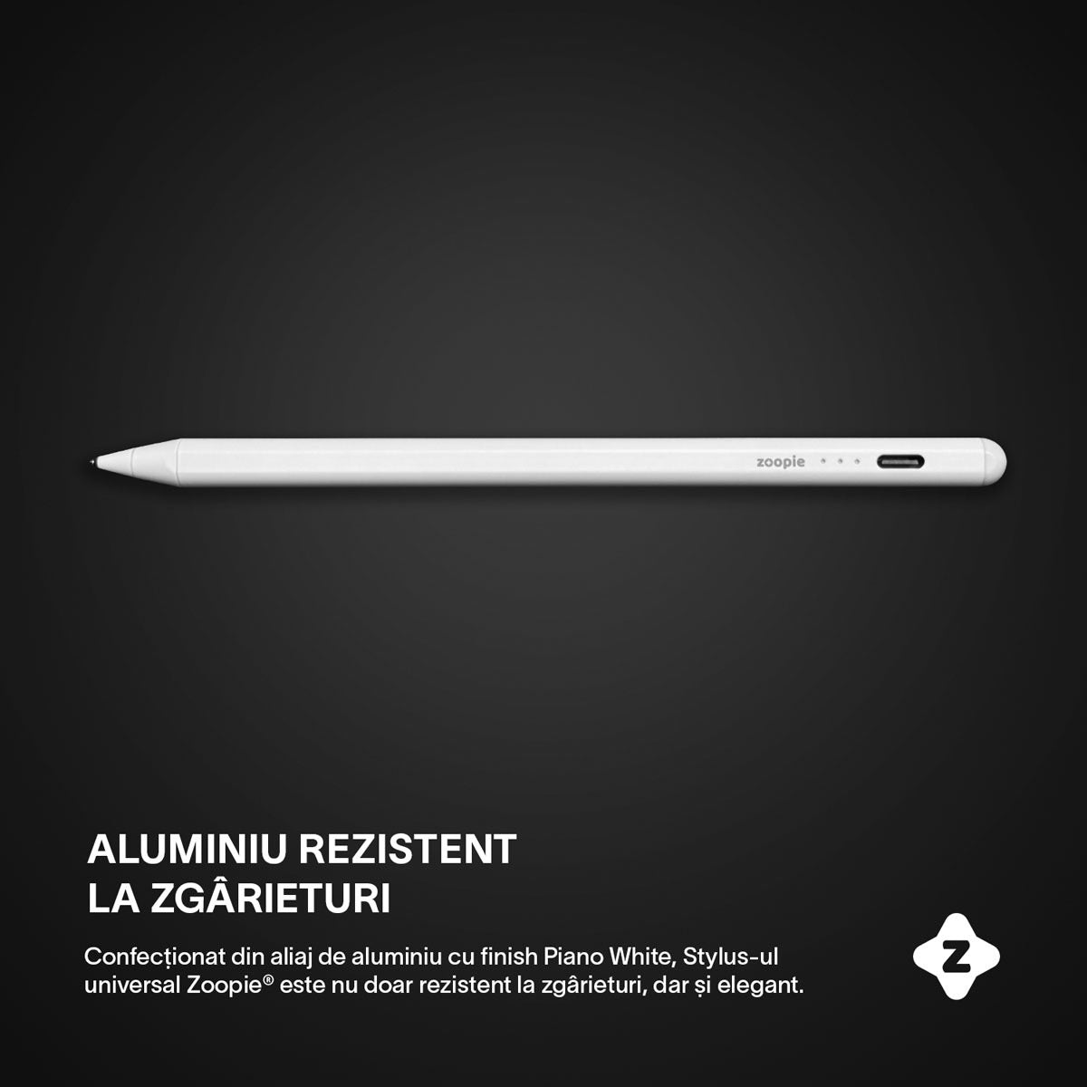 Stylus Pen Universal, Zoopie®, pentru tableta iPad 2010-2017, Android, Windows, Telefon, Varf Cupru, Magnetic, USB-C, Alb